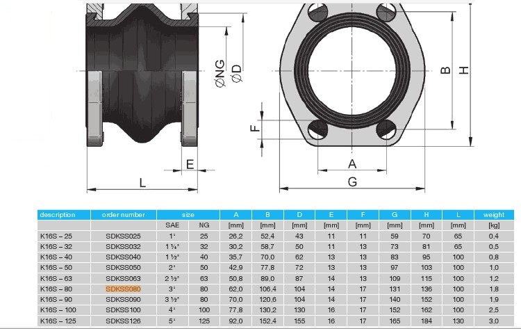 下面是NG法兰橡胶接头的产品实物图:
